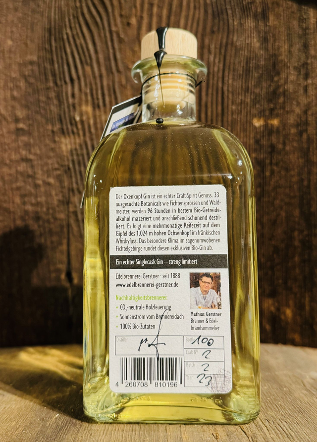 Ein echter Singlecask Gin in streng limitierter Auflage von 240 Flaschen. Jede Flasche ist ein Unikat und trägt die original Unterschrift vom Brenner Mathias Gerstner.